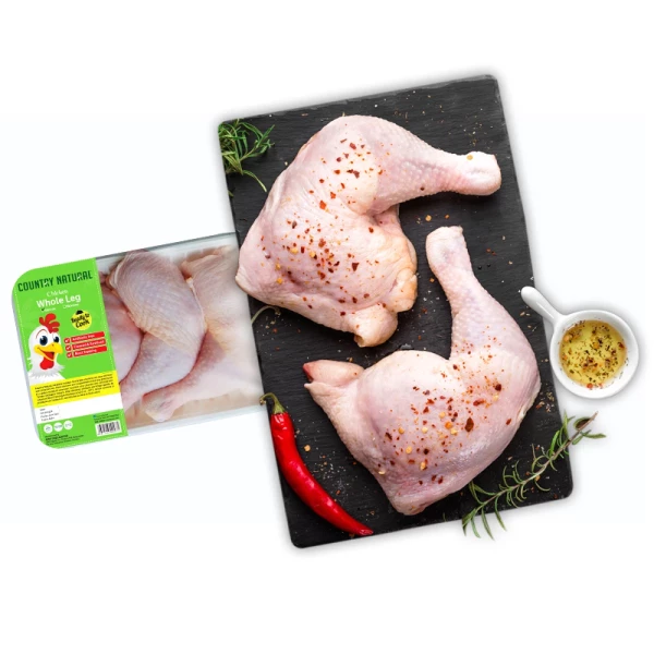 Country Natural Chicken Whole Leg (With Skin) is cleaned and ready to cook. This whole-leg chicken is ideal for cooking hassle-free chicken leg recipes.