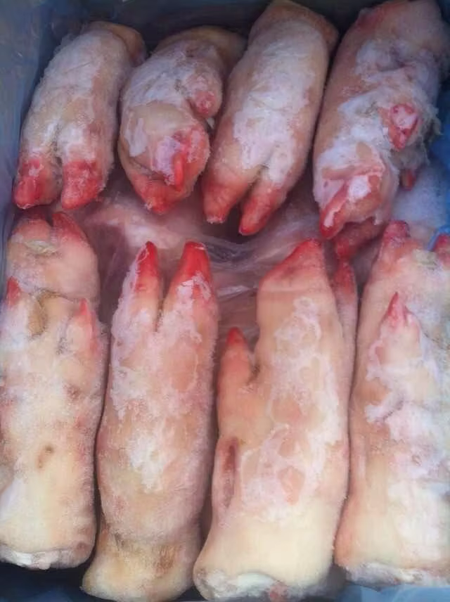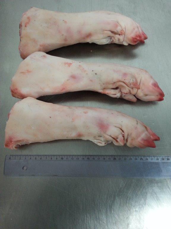 We select and separate the frozen pork front from the frozen pork hind feet.